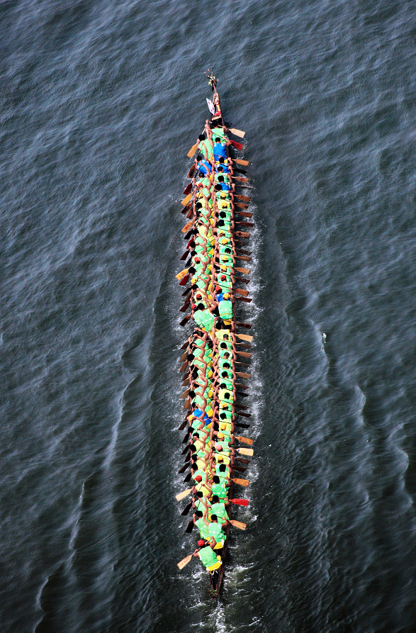 相传古时楚国百姓不舍得贤臣屈原投江死去,为避免屈原肉身葬身鱼腹,人们自发荡舟江河以驱散鱼群,并投米团入江中,以求得屈原肉身的保全。后来逐渐发展成为在五月初五这天赛龙舟和吃粽子的习俗。