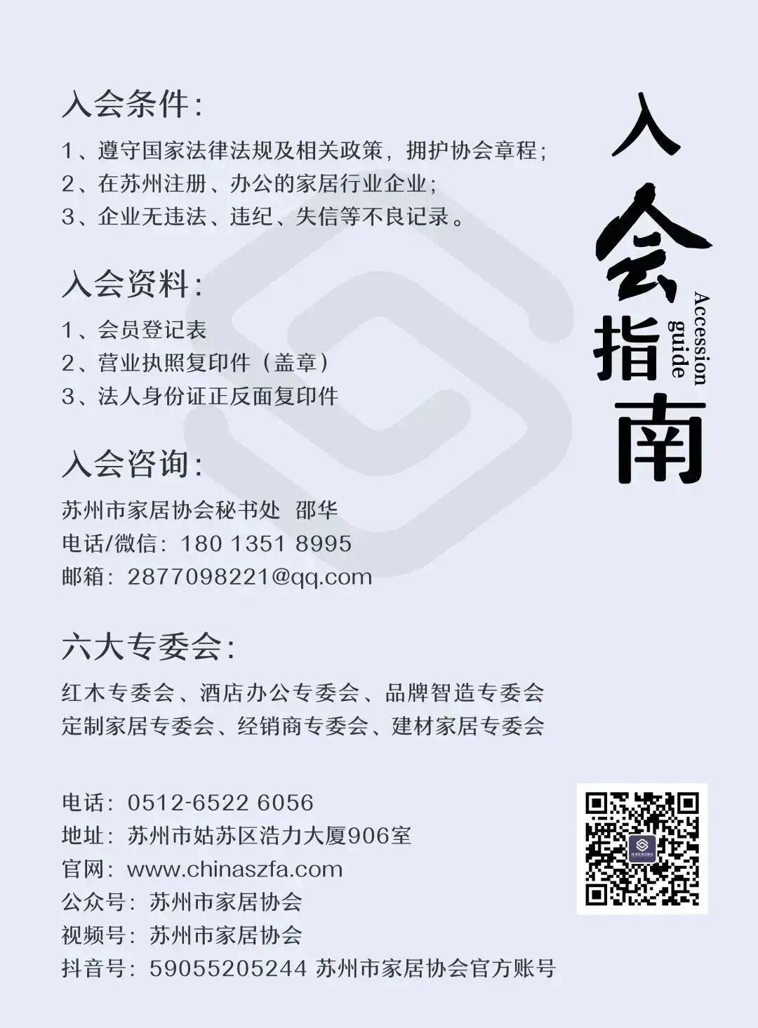 [温馨提示] 文章来源于苏州市家居协会公众号,转载注明原文出处,此文观点与查生意无关,理性阅读,版权属于原作者若无意侵犯媒体或个人知识产权,请联系我们,本站将在第一时间删掉 ,查生意仅提供信息存储空间服务。