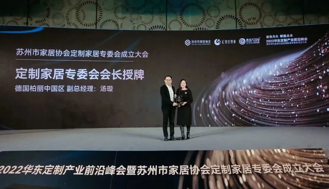苏州市家居协会定制家居专委会会长授牌:苏州永圣轩贸易有限公司、德国柏丽中国区副总经理——汤璇