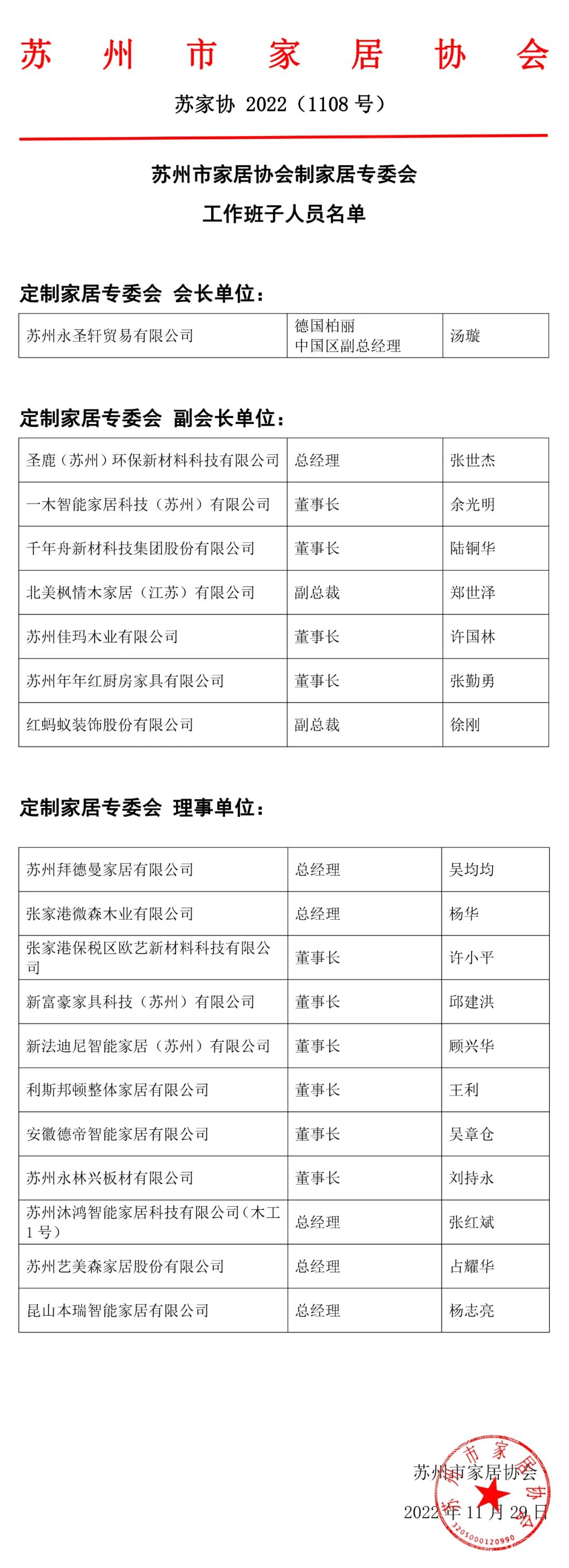 对苏州市家居协会定制家居专委会工作人员候选名单,参会人员再次举手投票,并全体一致通过,相信在专委会工作班子的共同努力之下,定制家居专委会一定能赋能行业发展。