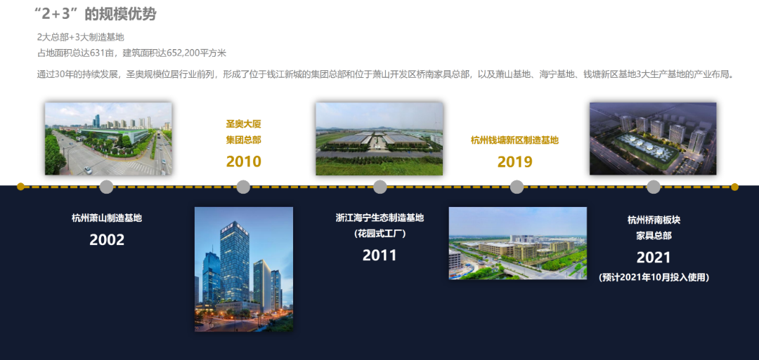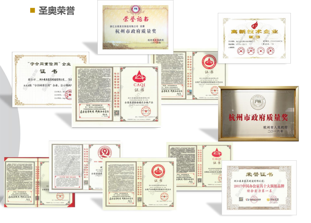 圣奥集团于1991年在杭州成立,是一家集办公家 具、生活家具、置业投资于一体的企业集团;其中 办公家具连续九年获得中国办公家具十大领军品牌。销售网络覆盖国全一二线城市,外销网络已遍布全 球110多个国家和地区。
