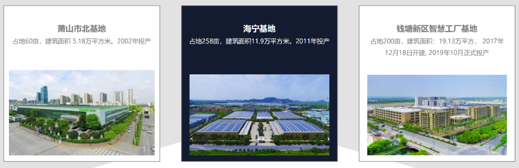 生产基地:萧山现代化高标准厂房达5.18万平米 ;