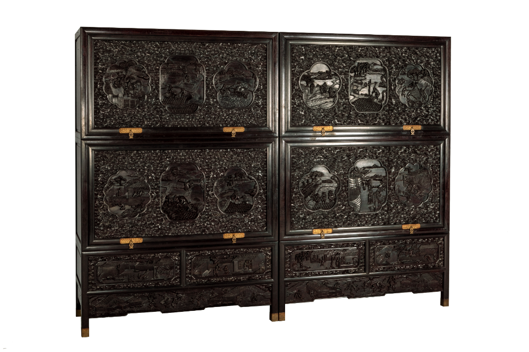2018年7月“小叶檀西厢记顶箱柜”获苏州市第八届“姑苏杯”金奖