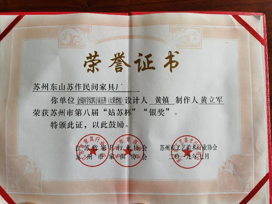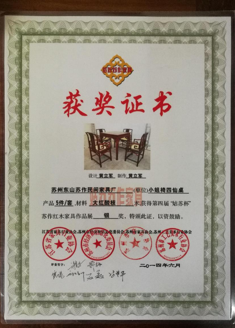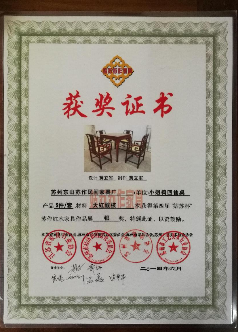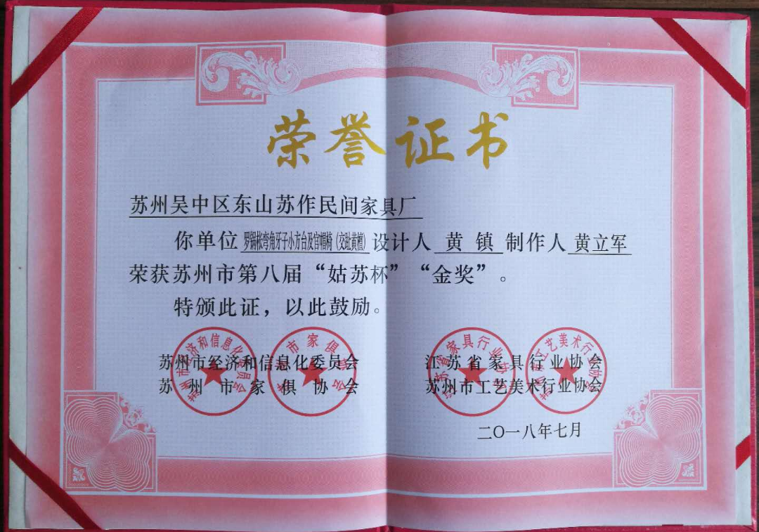 苏作民间家具是集开发、设计、生产、销售、服务于一体,专业生产明清古典硬木家具的综合型服务企业;公司秉承中国明清家具优秀传统,弘扬华夏文明为宗旨。多年以来坚持以选材讲究(黄花梨、小叶紫檀、大红酸枝、缅甸花梨等为主)、真材实料、制作精细、形体典雅、优质服务而久享盛誉,赢得顾客们的赞誉,以及市场的青睐,产品畅销江浙沪,销遍全国29个省市。近年来,公司产品多次在各大展会上荣获大奖,“姑苏杯”苏作红木家具作品展,“苏艺杯”国际工艺美术精品博览会上斩获金银奖。