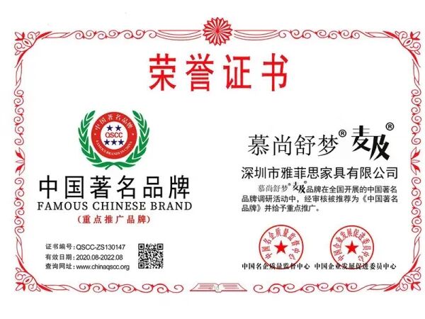 深圳市雅菲思家具有限公司(慕尚家居)位于“家具之都”广东深圳,成立于1999年,主要服务于国际知名软体品牌家具OEM供应链。2011年由出口转内销, 创办慕尚舒梦品牌。