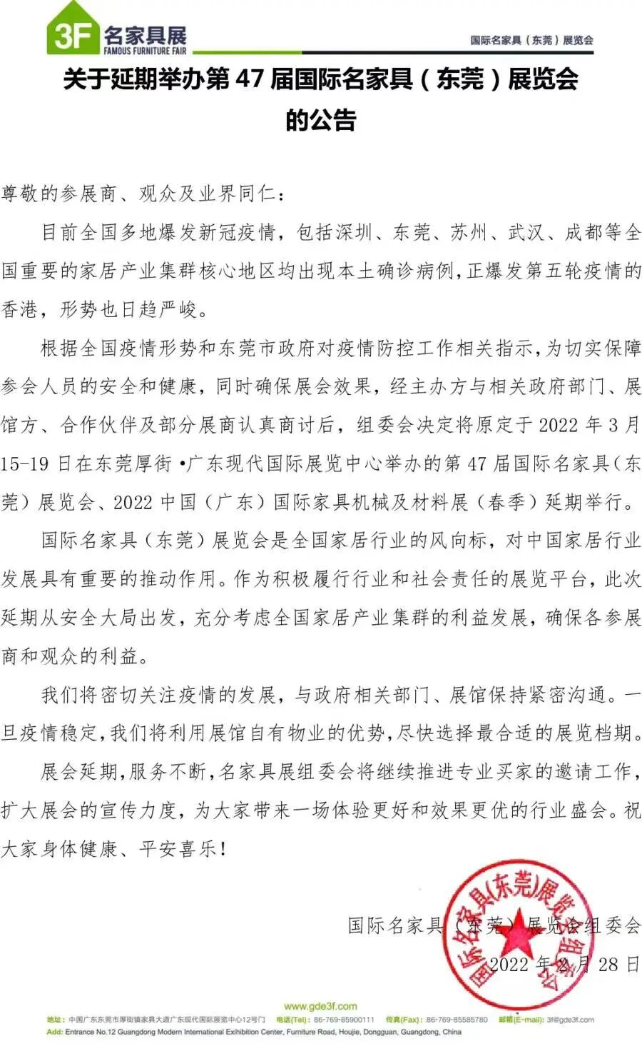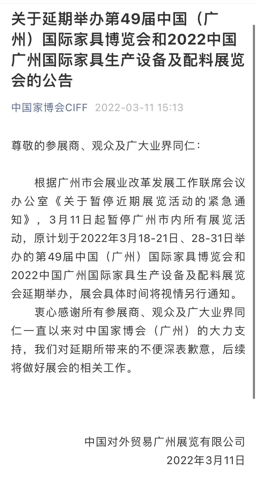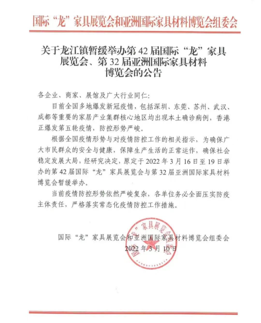 【焦点】广州、东莞、深圳、龙江家具展延期举行