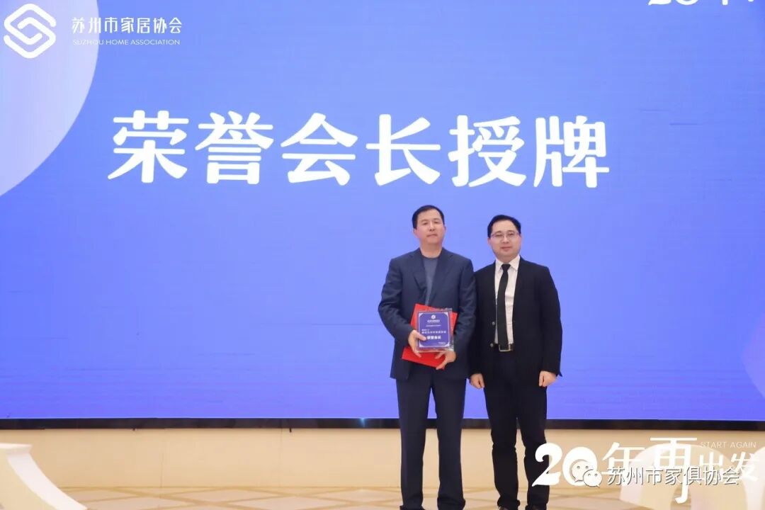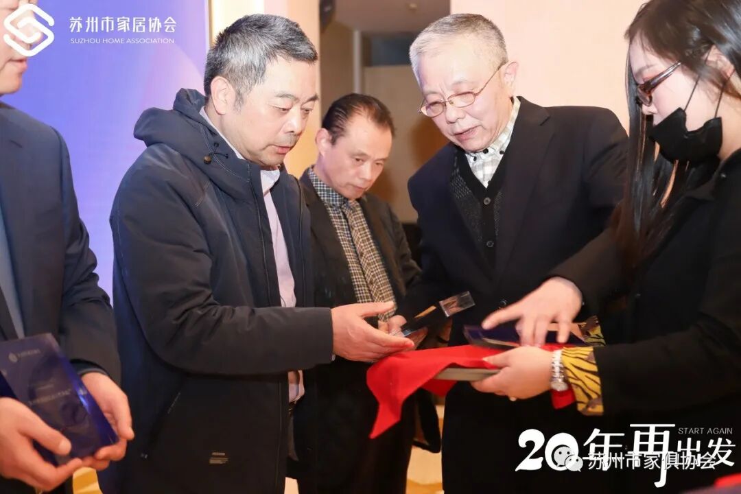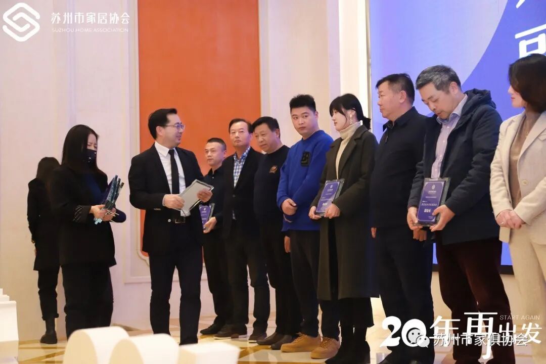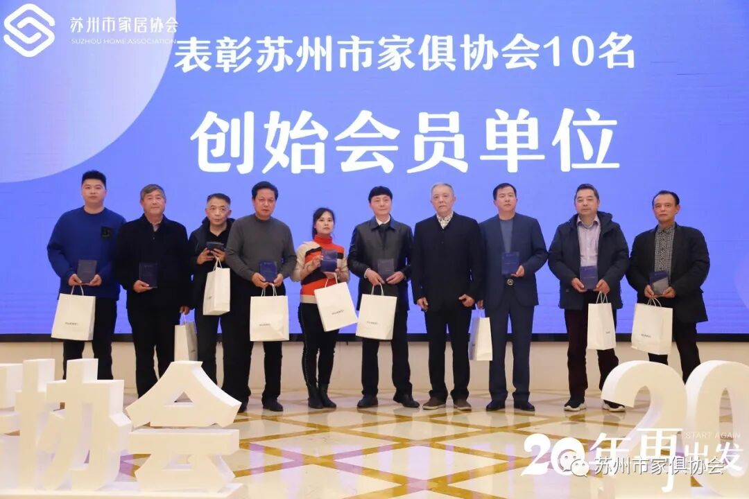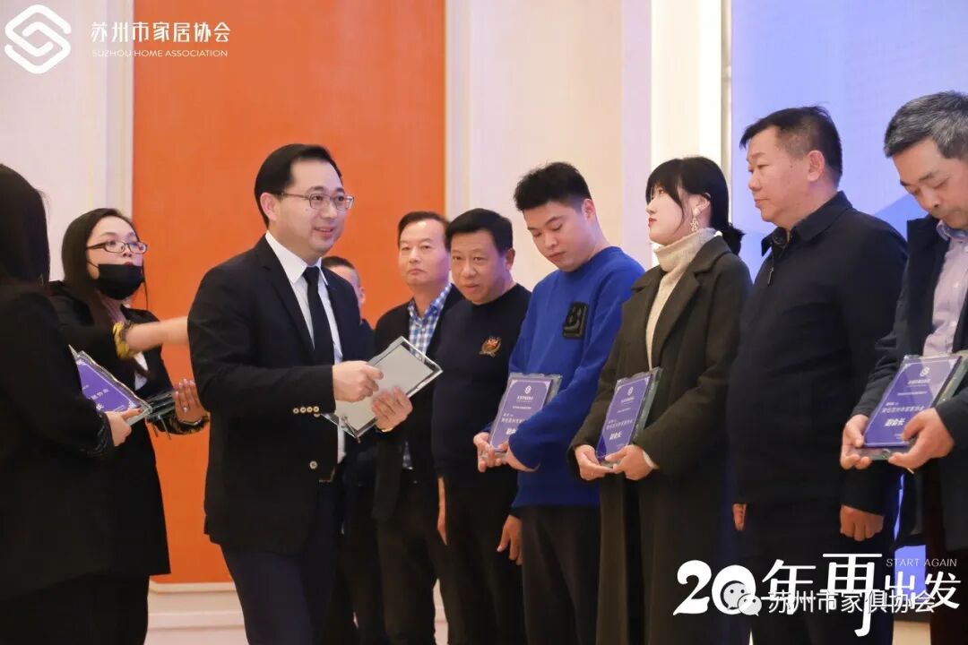 20年,砥砺奋进,20年,与初心者同行!苏州市家俱协会20年创始会员获得者分别是:苏州市浩强红木工艺家具厂、苏州红木雕刻厂有限公司、常熟市东方红木家具有限公司、常熟东方木业有限公司(隆力奇)、苏州市新先锋木业股份有限公司、昆山市丰和实业有限公司(情人岛)、苏州四叶草木业有限公司、苏州苏家木业有限公司、苏州相城区蠡口家具行业协会、苏州市新天地国际家具城(苏州市金利源家具博览中心有限公司)。苏州市家俱协会创始会长石磊颁发奖项。