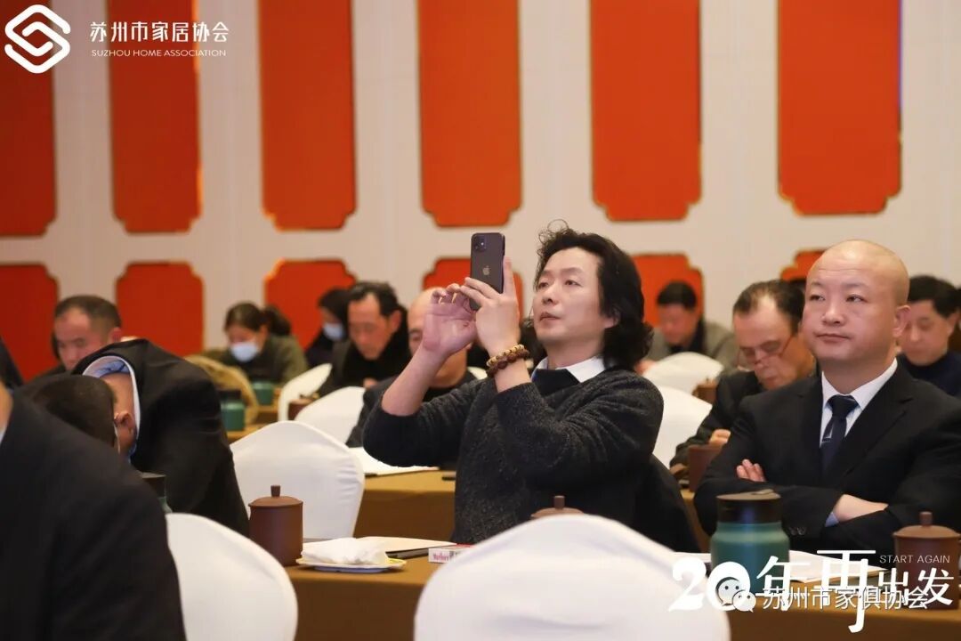 苏州市家居协会第五届会长李家网先生发布重要讲话,他从四个方面向与会人员汇报了自己与家具的渊源,从大家信任让我不断自驱到家具行业让我一辈坚守,再到苏州家具让我追逐梦想,与会人员发出阵阵掌声。