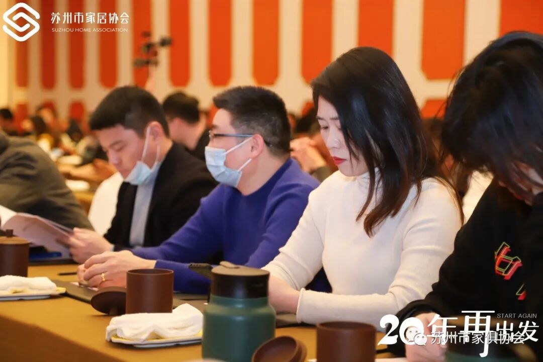 历经20年,见证了苏州家居业的高光时刻,根据上级主管部门要求,秘书长石磊向大会宣布了苏州市家俱协会第四届换届筹备会决议和苏州市家俱协会第四届九次理事会决议:1、会议通过了苏州市家俱协会更名苏州市家居协会;2、表决通过修改苏州市家居协会2021年协会章程;3、表决通过了协会会费调整,会长会费年度30000元/年;副会长会费年度6000元/年;理事会费年度3500元/年;会员会费年度1500元/年;4、表决通过了苏州市家居协会会长及法定代表人候选人李家网、监事候选人潘玲、秘书长候选人李韵,副会长候选人若干。