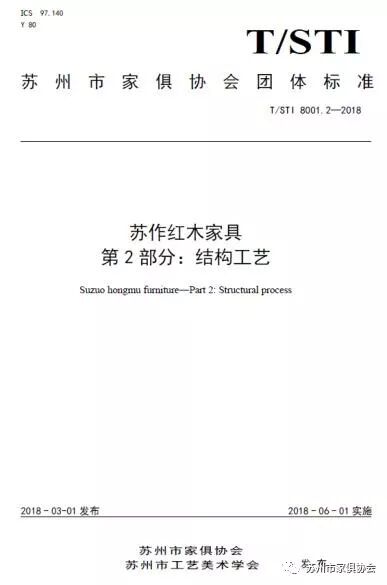 为弥补这一缺憾,在政府相关部门的关注、指导下苏州家俱协会集苏作红木家具企业的专家、学者,国家、省、市级非物质文化遗产明式家具制作技艺代表性传承人、工艺美术大师、老艺人、工匠等的实践经验,汇总整理形成了《苏作红木家具团体标准》。