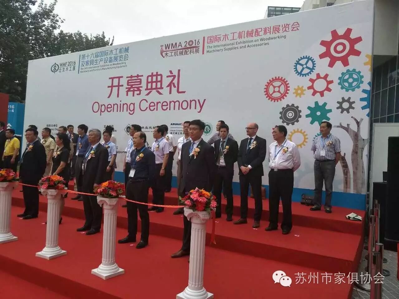 第十六届国际木工机械及家具生产设备展览会于2016年6月1日-4日在北京举办,苏州市家俱协会组织18家会员单位共22人前往观展,6月1日上午倪国梁秘书长代表苏州市家协作为嘉宾参加了展览开幕仪式,展会上许多先进木工设备吸引了参观者,观展期间还参加了“绿色环保儿童家具”论坛。在京期间苏州代表应北京金隅天坛家具有限公司邀请参观了天坛家具生产工厂,他们的生产设备、工艺和优良的产品得到苏州代表的赞扬和深受启发。