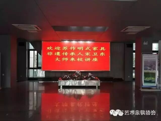 2016年4月6日下午,苏作明式家具非遗传承人宋卫东大师应邀来到了苏州市职业大学艺术学院,为师生们作了题为《苏州家具的传承与发扬》的精彩演讲。宋卫东先生是高级工艺美术师,江苏省家具协会副会长,苏州家具协会副会长、苏作红木专业委员会主任、苏州市工艺美术大师、苏作明式家具非物质文化遗产传承人,苏福企业总经理。