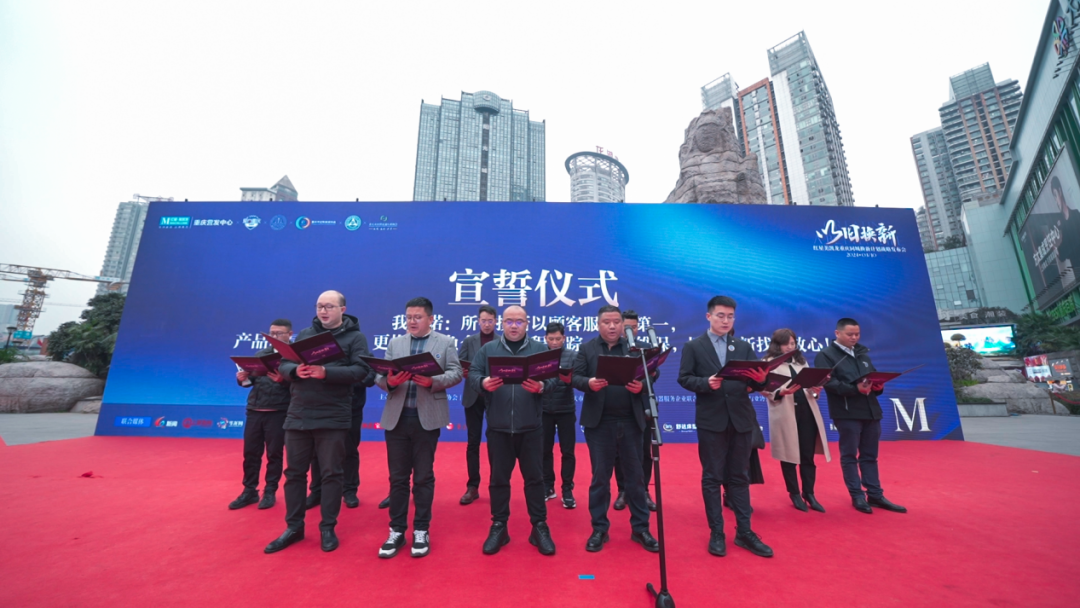 发布会上,老板电器重庆运营中心总经理孙江伟与舒达床垫重庆总经理刘传群分别作为家电与床垫行业的代表进行发言。孙江伟讲到,厨电作为承载一日三餐烹饪重任的产品,使用频率高,易老旧。老板电器将进一步升级服务,多措并举,认真践行“换新计划”为消费者带来更优质、节能、健康的厨房烹饪空间。刘传群也表示,通过此次“换新计划”的契机,打造无缝对接的全流程服务,为消费者提供一站式的换新服务。旧家具的上门回收、专业拆解到环保处置,在提供服务的同时还将提供更多换新优惠补贴,实实在在贡献一份力量。加快产品更新换代是改善国民品质家居生活的重要举措。在“重庆同城换新计划”的战略指导下,红星美凯龙西南全球家居1号店、重庆至尊MALL、重庆二郎商场、重庆南坪商场、重庆茶园商场率先成为“以旧换新试点服务站”,为消费者带来更加便捷、优质、贴心的以旧换新服务。此外,老板电器、美的、芝华仕、舒达床垫、喜临门、海信、九牧卫浴、立邦、天东门窗也荣获首批“换新服务标兵”,各大家居家电品牌将不断创新产品供给,以绿色、健康、智能的新产品、新技术赋能“以旧换新”实施,并与红星美凯龙重庆同城五店一起宣誓:“所有换新以顾客服务为第一,产品质量负全责,更换服务负全责,全程跟踪,加强维保,以旧换新找我放心!”随着“以旧换新-红星美凯龙重庆同城换新计划”的正式启动,红星美凯龙也将在政府和各大协会的指导和支持下,更有策略地加快“以旧换新”服务开展,深化供给侧,不断优化品牌结构,投入重磅资源,挖掘存量变增量,促进换新消费增长,引领重庆家居市场的全新航向,为千万家庭构建舒适、健康的家居生活。