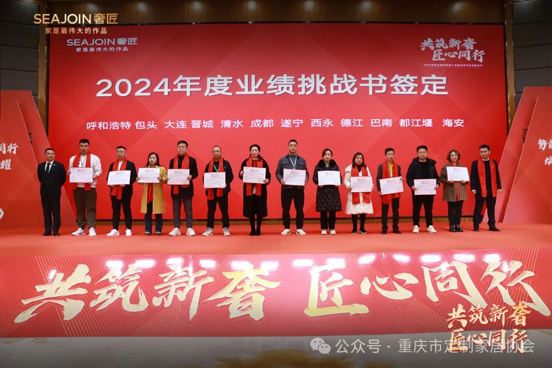 过往的业绩值得肯定,新一年挑战也接踵而至。呼和浩特、包头、大连、晋城、清水、成都、遂宁、西永、德江、巴南、都江堰、海安12个城市上台签订2024业绩挑战书,业绩挑战书的签定是目标、是动力、是责任、是鞭笞!接下来让我们立足新起点,瞄准新目标,迎接新挑战,为完成全年业绩目标,奋勇向前,同创佳绩!
