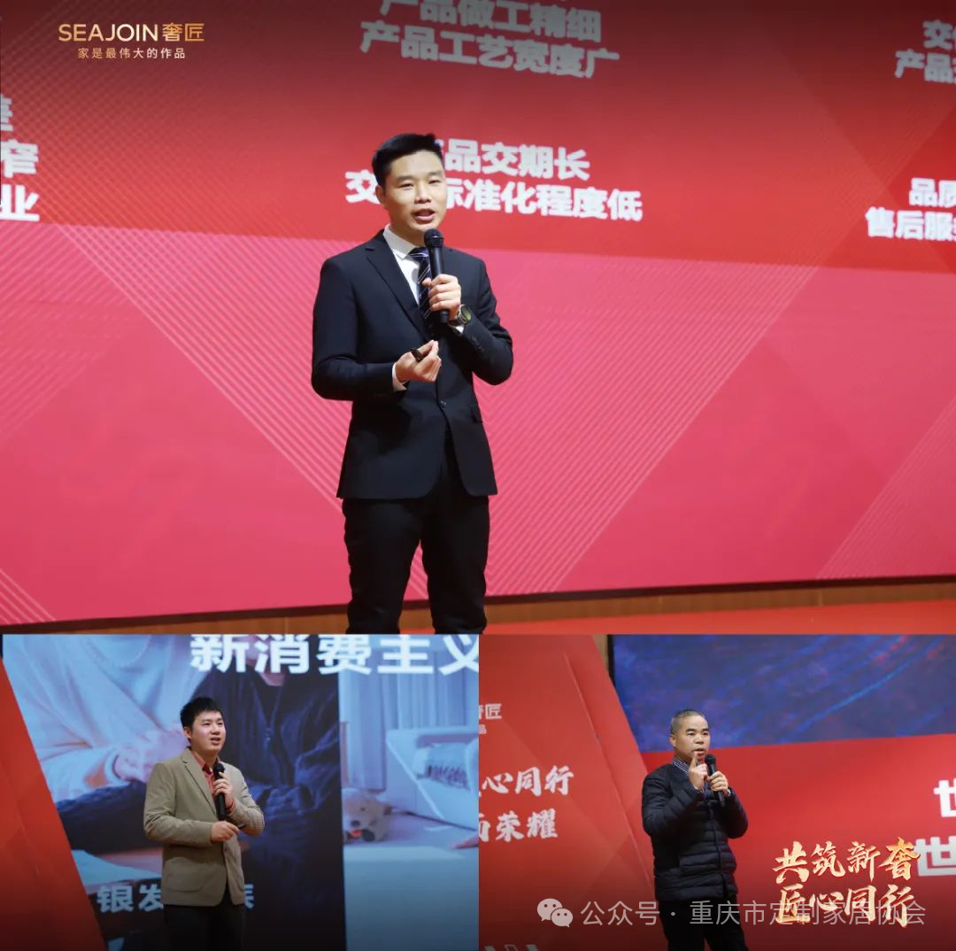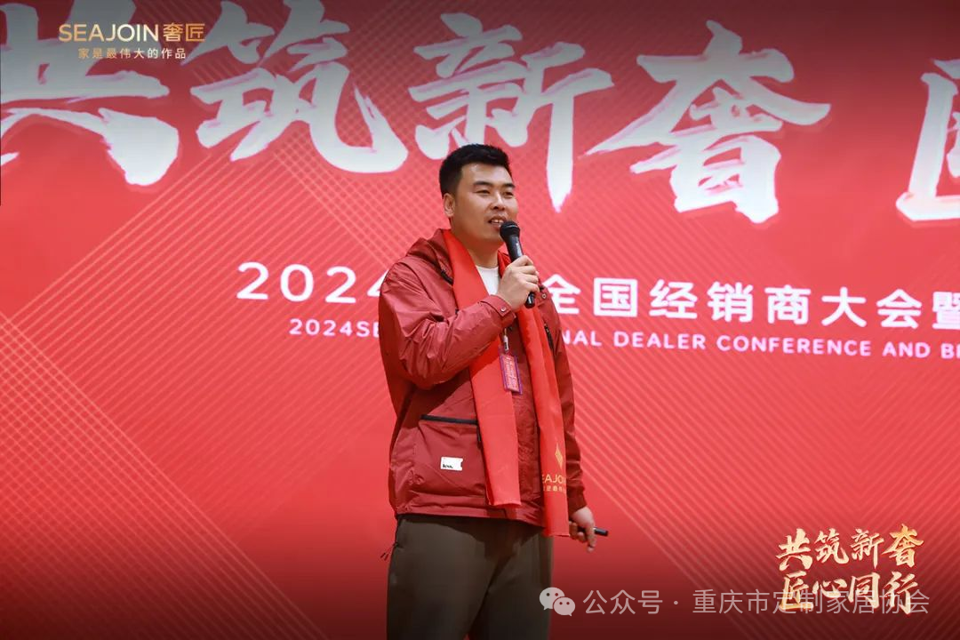 紧接着呼和浩特经销商张鹏飞、成都经销商耿玉华作为优秀经销商代表上台和现场的奢匠家人共同分享他们在日常经营中如何提高业绩而做的一些努力与方法。也对2024年如何提升业绩增长提出新的变革与要求,创造业绩新高度。