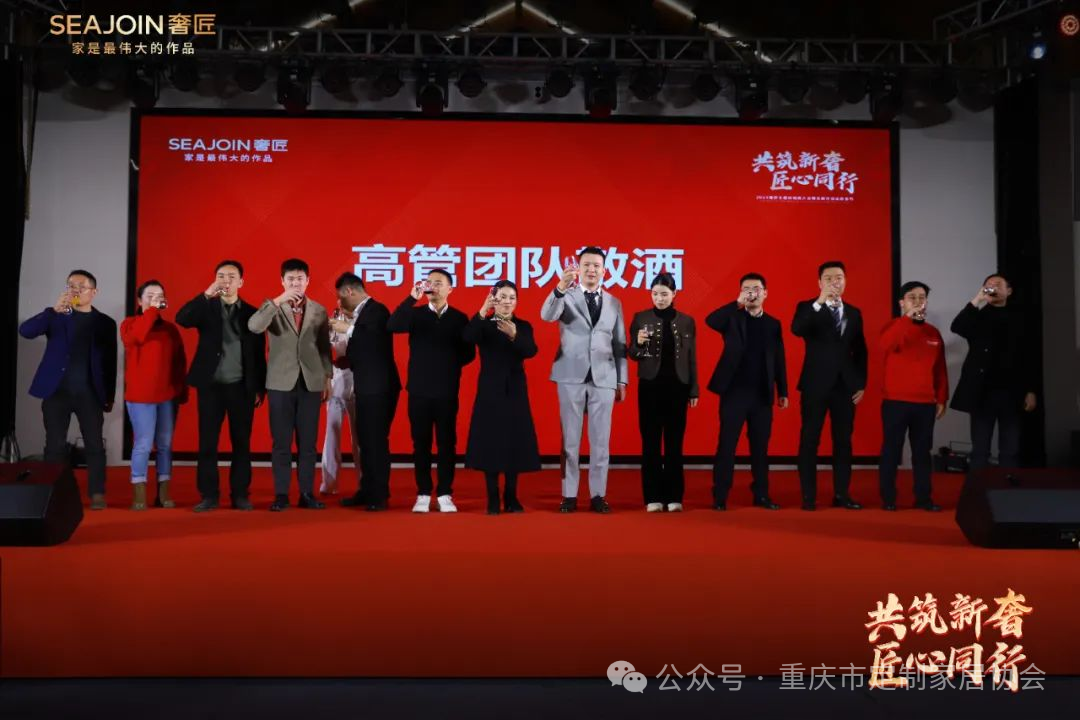 晚宴伊始,奢匠家居董事长王总携奢匠各管理层上台与台下各经销商举杯共饮。