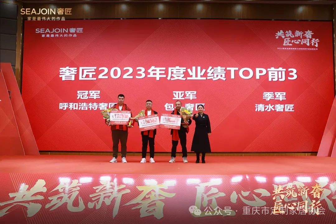 呼和浩特、包头、清水,获得奢匠2023年度业绩TOP前三,奢匠家居董事长王延容女士为获奖者颁发荣誉证书及奖杯!