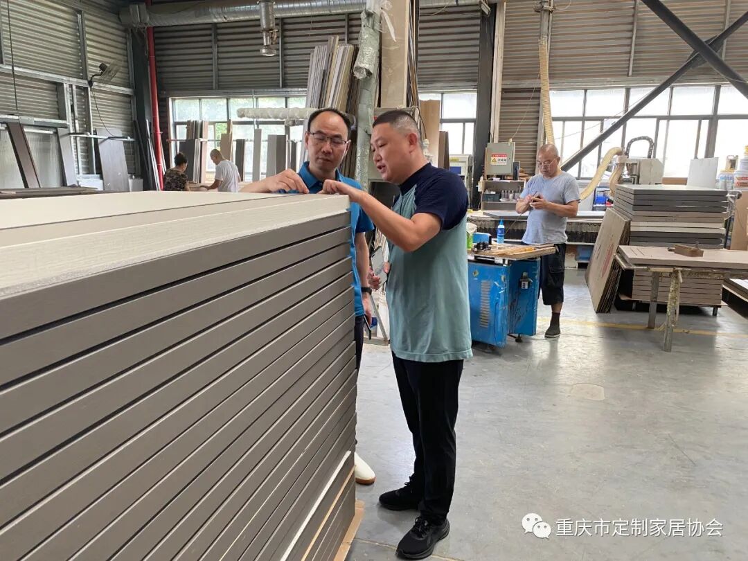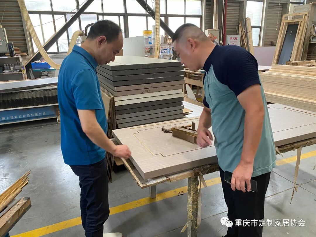 在缘睦木业总经理张胜红的带领下,协会秘书长袁建明一行与张总经理进行了坦诚和深入地交流。据介绍,重庆缘睦门业有限公司成立于2020年4月,坐落于江津区珞璜工业园区。据了解,该公司目前主要围绕定制研发木门产品,而独创4厘米极窄门套线是一大亮点;同时,公司采用定制家居配套三胺板作为主材,板纹更具质感,外观更具观赏性和装饰性;加上纯手工打造U型装饰金属条工艺,让套装门也更有质感。为定制企业及整装企业销售赋能。张胜红表示,目前公司走精品路线,把合作的定制企业和装企交付好,再拓展客户,不盲目追求规模效应。