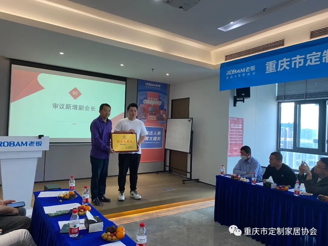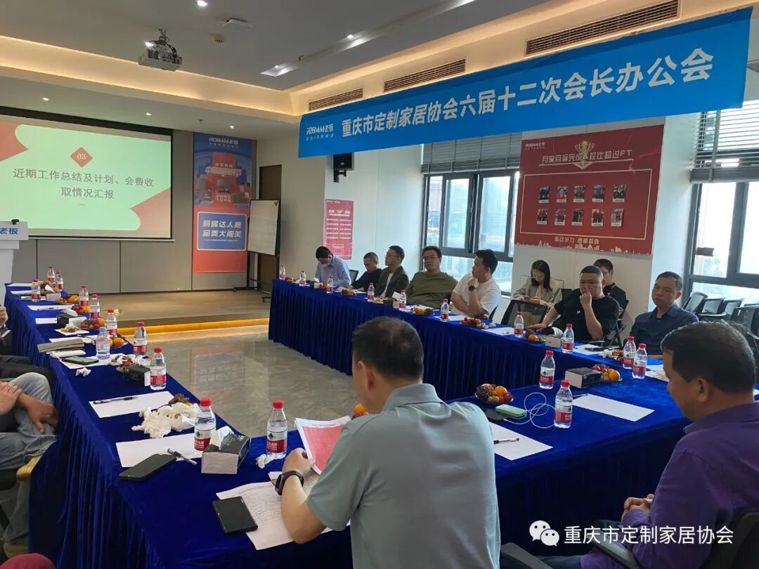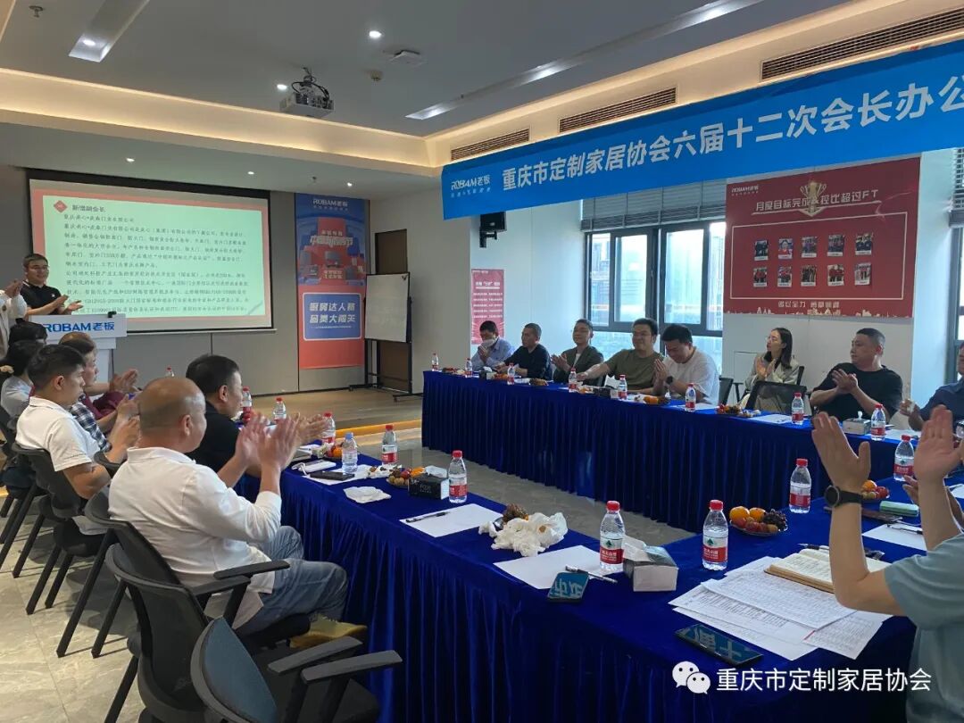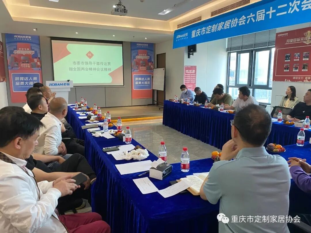 2023年4月14日下午,重庆市定制家居协会六届十二次会长办公会在老板电器重庆营销中心会议室召开。协会配套副会长以上单位参会。会议由协会秘书长袁建明主持。