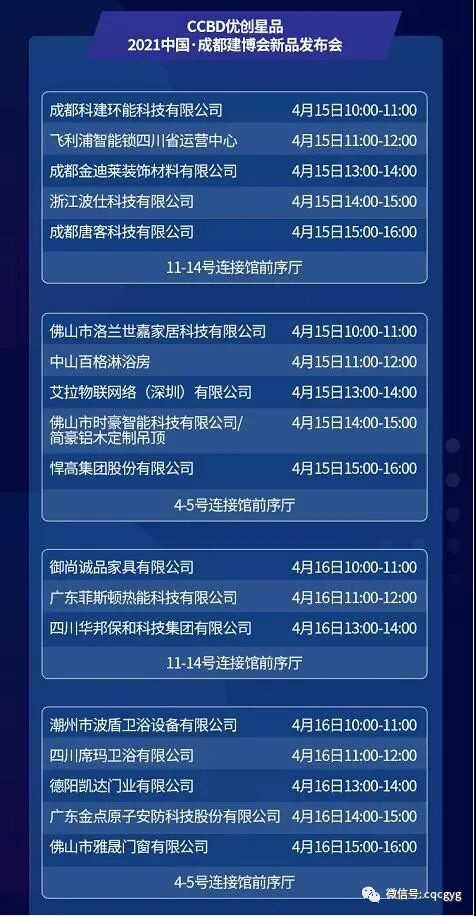 成都建博会作为中西部最大行业展会,对于很多经销商和渠道商而言,这里不仅是一次商贸对接会,更是一场行业新品发布会,行业品牌都会选择展会平台,发布新品爆款。展会组委会将联合18家参展品牌企业举办“CCBD优创星品——2021中国成都建博会新品发布会”,为市场和用户揭晓大家居建装市场所涌现出的一系列新产品、新方案、新技术,助力展商和观众之间实现合作。