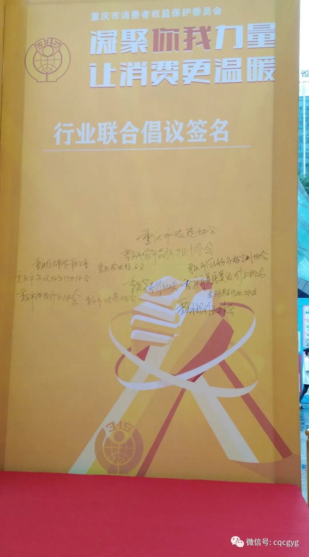 重庆市厨柜衣柜定制协会、重庆市银行业协会、重庆市保险行业协会、重庆市农产品加工业协会、重庆市家用电器服务企业联合会、重庆市纺织服装联合会、重庆市眼镜行业协会、重庆市美容美发行业协会、重庆市家政服务行业协会、重庆市果品行业协会、重庆市快递协会、重庆市家具行业协会等行业组织代表一同参加了联合倡议并签名。