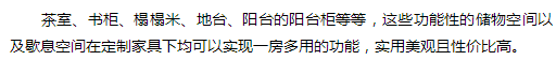 全屋家具注重细节的设计和搭配,品质感更高,全屋定制在强调个性化与功能性的基础上,加入了更多的自主创意与特色,可以充分体现主人的身份地位与生活品位、文化涵养,表达了一种生活态度。