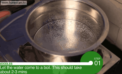 其实应该等水热至刚刚开始冒气泡,此时将面下锅,并顺时针搅动面条,面条很快便能煮好。
