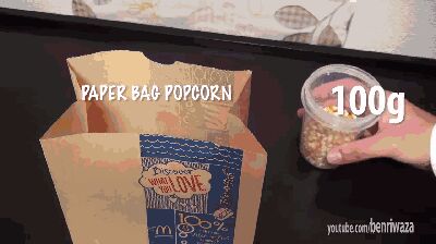 干玉米粒倒入纸袋中,可以放入少量白砂糖,然后把纸袋封好~