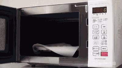 接下来用水浸湿一块毛巾,同样放入微波率中加热三分钟~