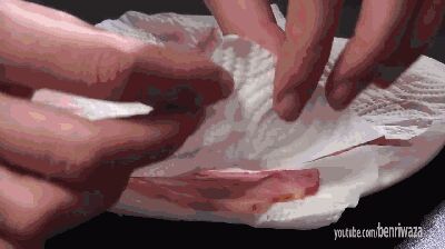 如果想更脆的话,就放一个碗,把肉放在碗上,再盖上一层厨房用纸。