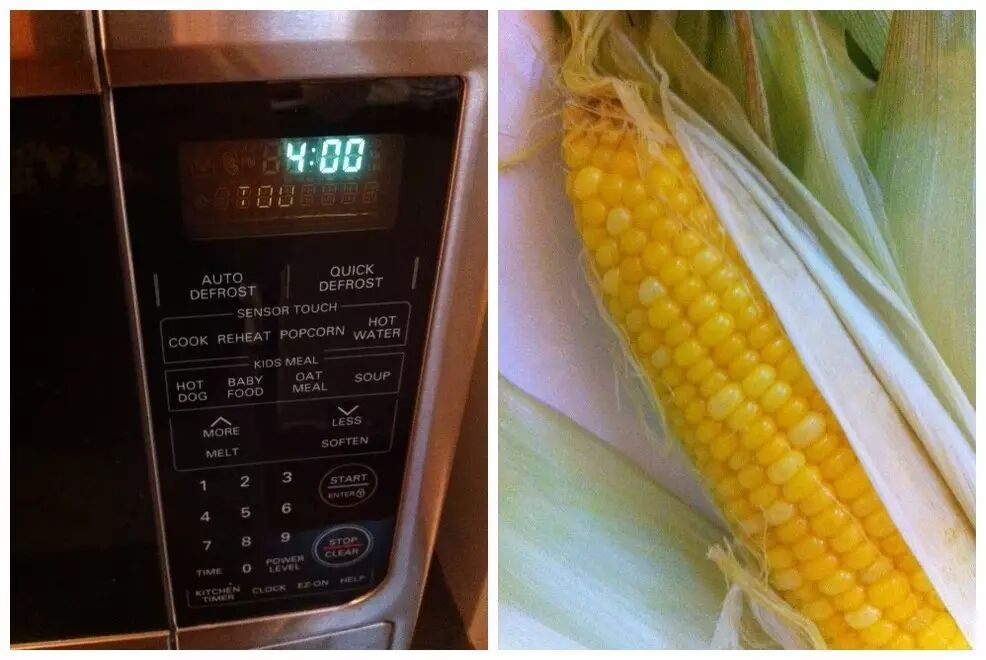 然后直接放入微波炉,高火四分钟后,等待一分钟再把玉米拿出来。
