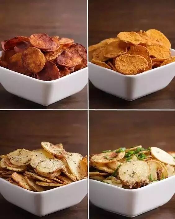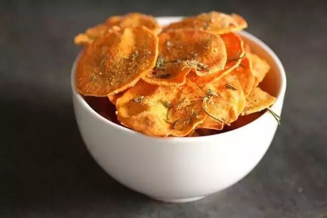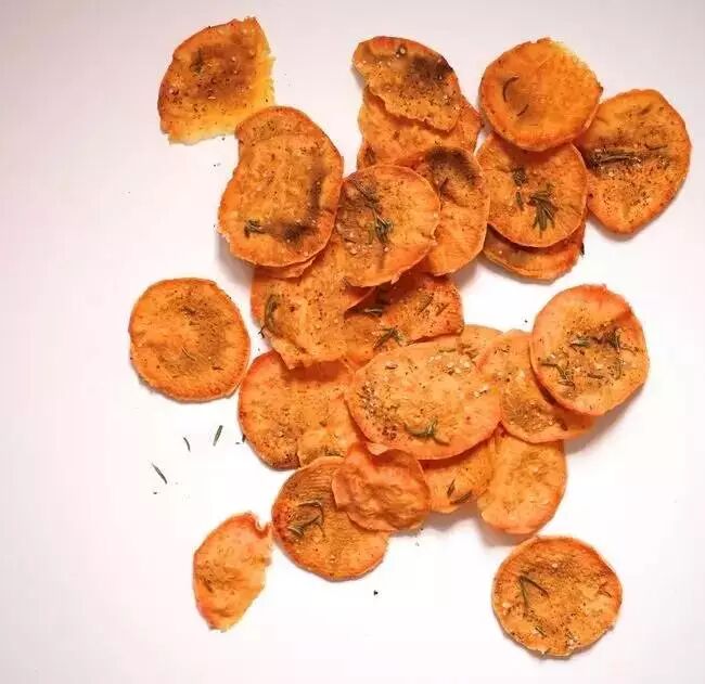 红薯片、土豆片尽量切到最薄,平铺到盘子上,可以撒盐和胡椒粉,也可以刷蜂蜜~