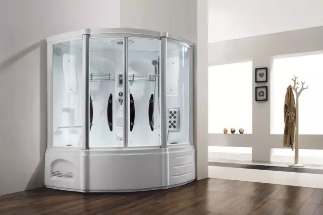 带蒸汽功能的整体淋浴房又叫蒸汽房,心脏病、高血压病人和小孩不能单独使用蒸汽房。