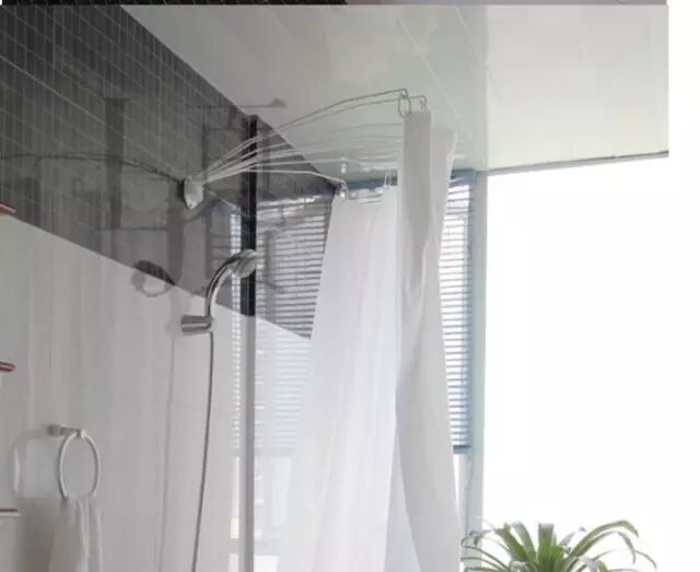 无论是什么形状的淋浴区都可以很方便的通过安装浴帘来达到简单的干湿分区。