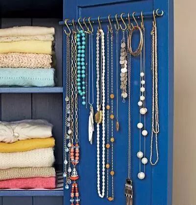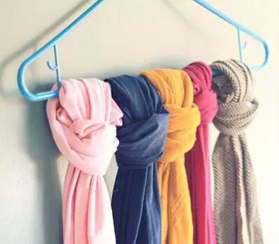 围巾这样保存带的时候没褶子,还省去衣挂钱。这样用着方便、还好找鞋架放不进去的鞋子...