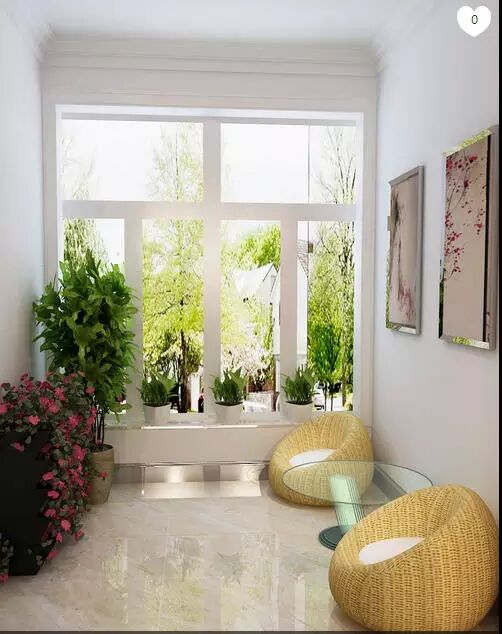 2.摆上绿植,加上两张凳子用来看户外风景