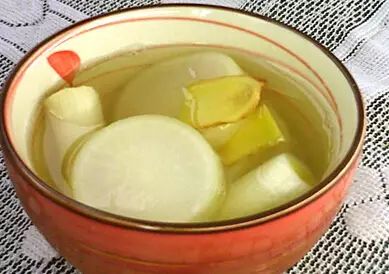 小儿可用生姜3片、大蒜3瓣、红糖半勺;成人用生姜7~8片、大蒜7~8瓣,红糖一勺,放入锅中加水,中火烧10分钟即可,严重时可一日三次。