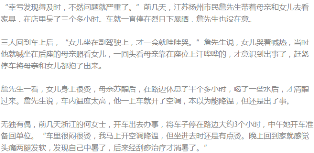 原来,车辆在烈日下暴晒,车内温度会非常高,再加上车厢相对密封,热气和废气排不出去,导致车厢内缺氧。