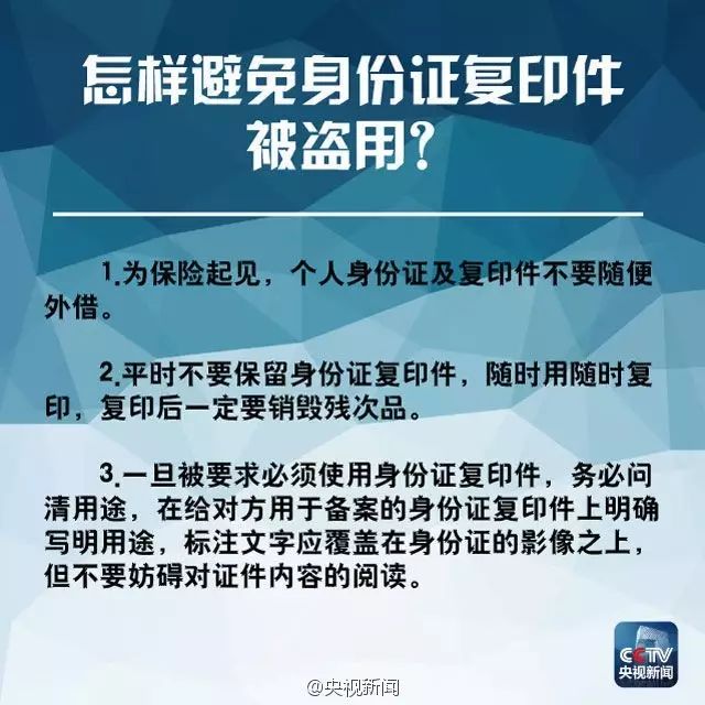 居民身份证是用于证明持有人身份的唯一证件,其重要性不言而喻。我们应该如何安全使用身份证?如何避免身份证复印件被盗用?身份证丢失应该怎么办?看图了解↓↓
