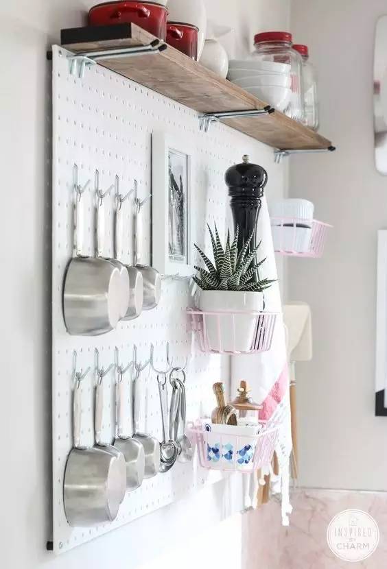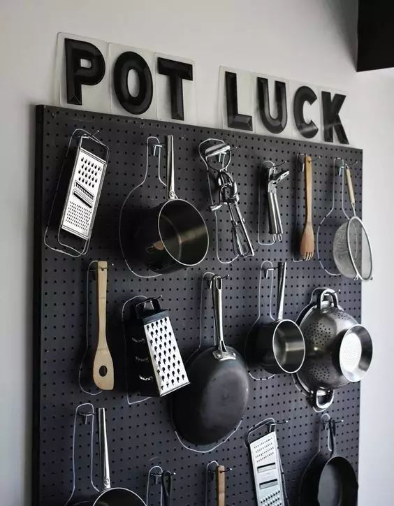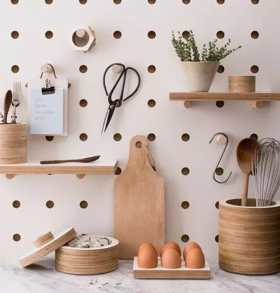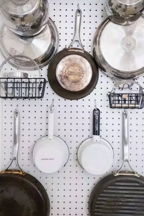 厨房绝对是东东板的用武之地,各式各样的锅铲瓢盆,都能一一被安放在洞洞板上