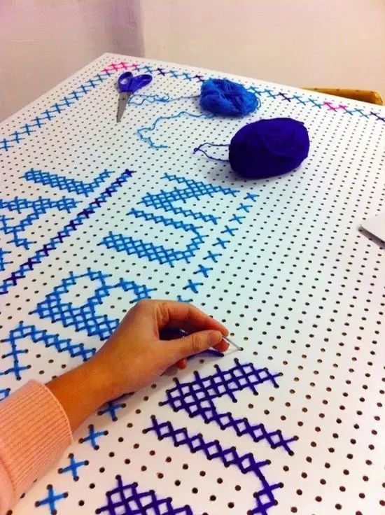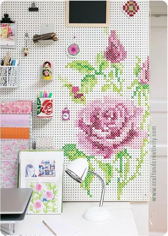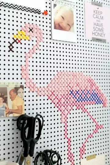 其实洞洞板的装饰性很强,如果你有创意的头脑和灵巧的双手,完全可以在洞洞板上完成一副十字绣,看看别人家的作品~一个字,美!