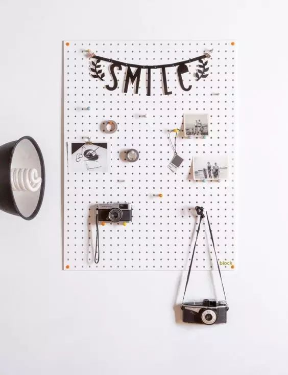 如果你觉得白色单调,没关系!买块彩色的洞洞板或者自己粉刷上喜欢的颜色,这就是一块有颜有实力的板子,随心所欲~