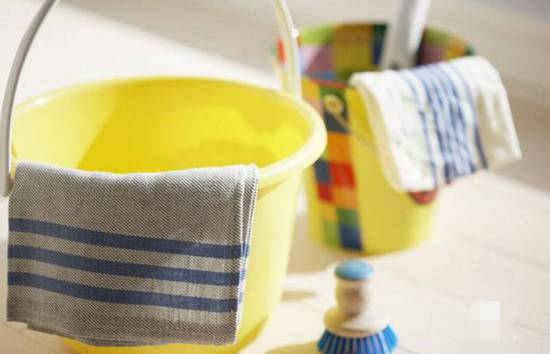 准备一大桶水、一块干净抹布