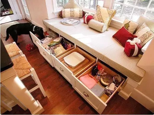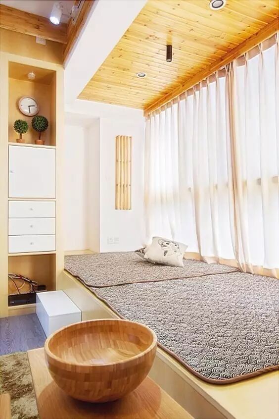 在飘窗处装上榻榻米,晴好时坐在窗边可以触摸阳光,看云卷云舒;风雨时坐在窗边可以听滴答雨声,看颗颗雨珠。一次小坐就是一段旧时光。