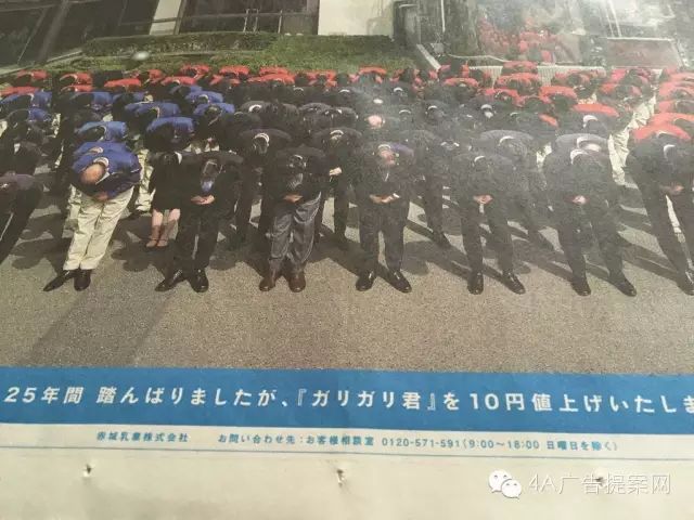 为了表示涨价的歉意,赤城乳业株式会社特地全员动起,上至董事长、下至基层员工,拍摄广告向全日本人民道歉。在这则60秒的广告中,公司社长率领全部员工出镜,神情相当凝重,集体鞠躬道歉,并表示「我们坚持了25年,实在坚持不住了……」。