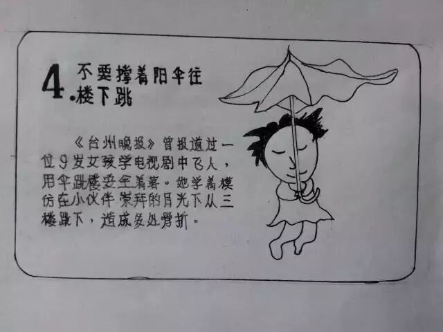 最近,一位杭州外公手绘的《儿童安全警示教育》漫画册在微博上热转,26幅漫画张张都能救命,看了简直满满都是爱。五年来张大爷闲暇时坚持读报剪报,把媒体曾报道过的儿童安全事故记下来,最终手绘成册。笔法虽算不得精致,但“干货”特别多。暖心,还特有年代感,小编看了直呼,走心、服!