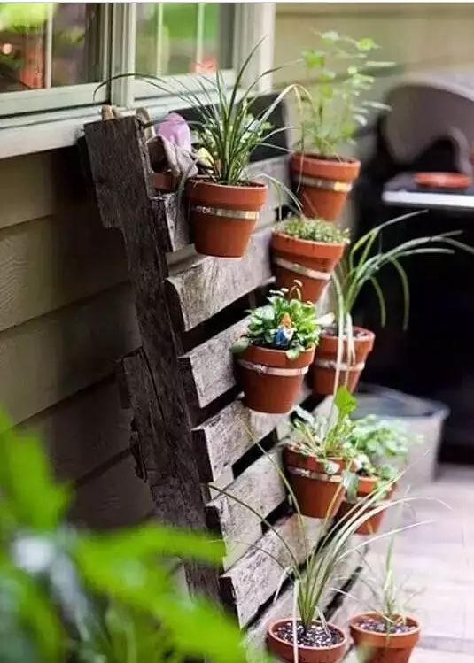 5.用一根竹竿木棍串起的花盆,立体诗意