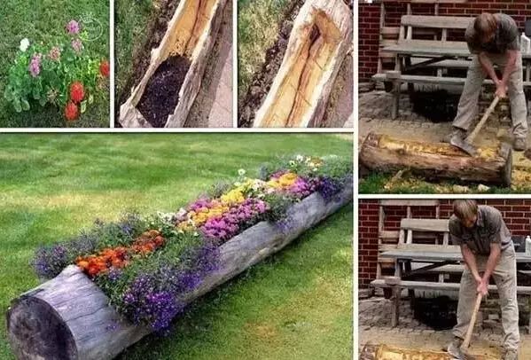 4.捡了一块大木头,当柴烧了可惜,不如凿空变成天然花盆
