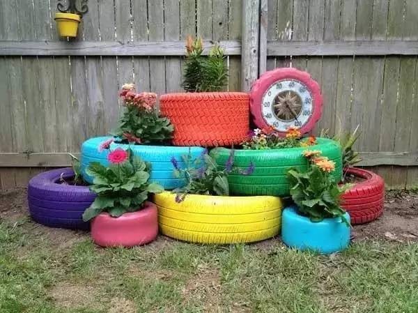 19.轮胎报废了,就这么重新利用吧,涂上色彩,种上花草,真的美翻了