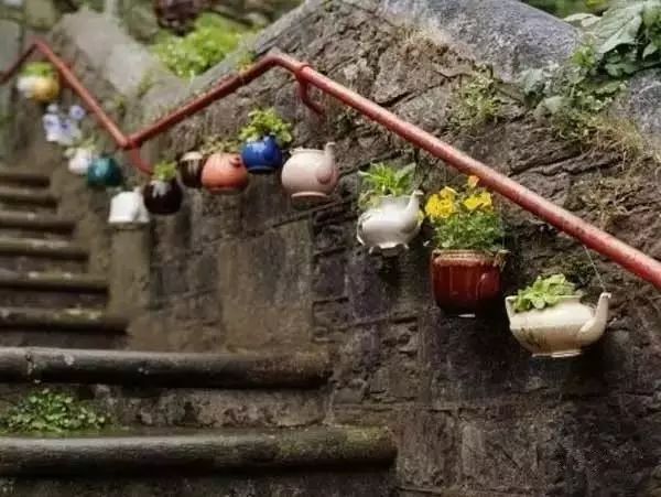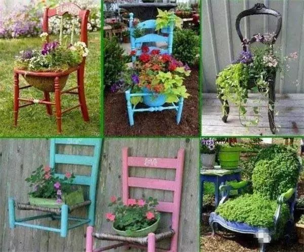生活中废弃的瓶瓶罐罐等各种容器、鞋子帽子椅子轮胎等等的废物利用,能让你的花园比专...
